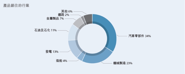 我們的許多客戶均是汽車、機械製造及石油和石化等行業的合格供貨商或關聯企業。產品的終端用戶包括日產、奧迪、福特、豐田、通用、本田、大眾、卡特彼勒和米其林等。