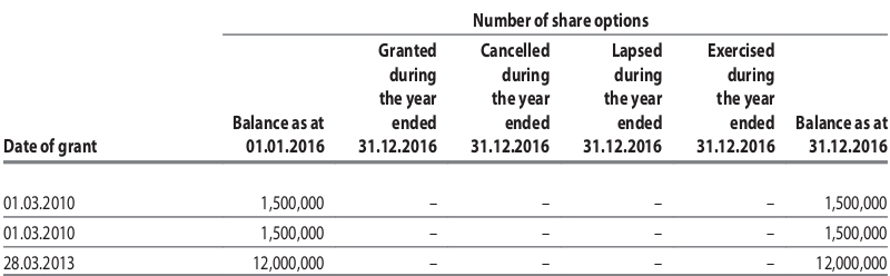 under continuous contracts. None of these options were cancelled or lapsed during the year ended 31 December 2016.