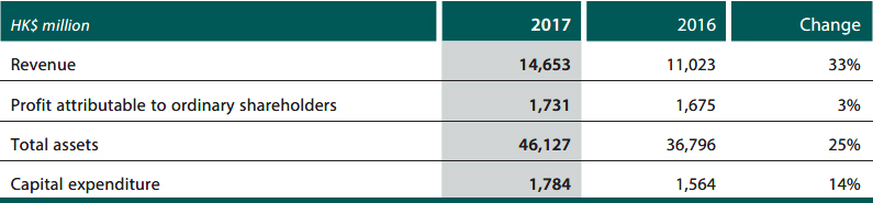 In 2017, revenue from the engineering contracting business was HK$14.7 billion, representing a year-on-year increase of 33%. Net profit attributable to ordinary shareholders was HK$1.7 billion, 3% more than last year. This strong performance can be attributed to CITIC Construction’s new overseas projects and the three China EPC projects undertaken by CITIC Engineering Design.