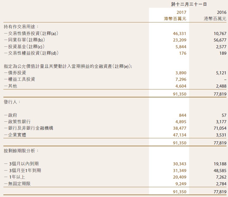 2017年度,由本集團於1月1日之後發行並於12月31日之前到期的非保本型理財產品的發行總量為港幣 713,765百萬元(2016年:港幣829,515百萬元)。