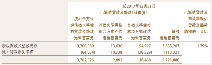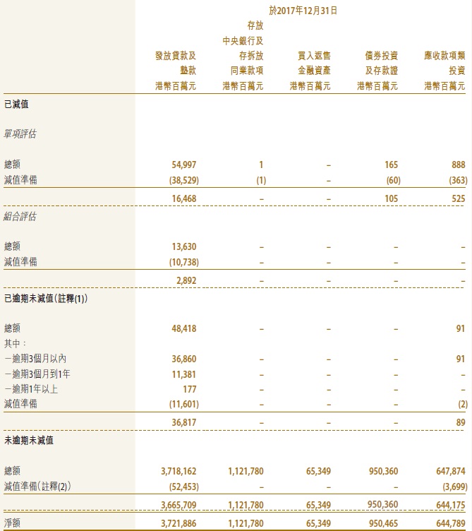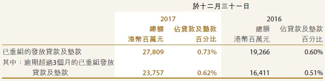 2017年,本集團通過其他方式轉讓貸款賬面原值港幣57,817百萬元(2016年:港幣78,223百萬元),其中,轉 讓不良貸款港幣46,336百萬元(2016年:港幣60,396百萬元)。本集團根據附註2(i)和附註3進行評估風險和報 酬的轉讓情況,認為上述金融資產符合完全終止確認條件(附註25(d))。