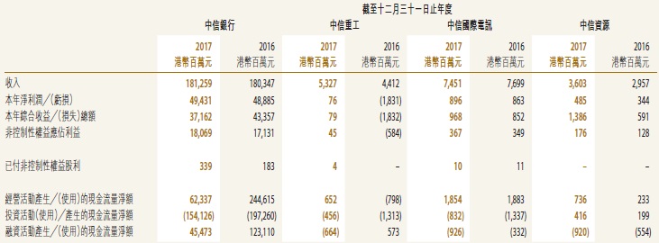 由於本公司及翰星於上述收購前後均由中信集團最終控制,且該控制並非暫時性的,本次收購屬於同一控 制下企業合併。因此,本集團在編製2017年度合併財務報表時,視同翰星在本公司的最終控制方對其開始 實施控制時納入本集團合併範圍,並對合併報表的期初數以及前期比較報表進行了相應調整。
