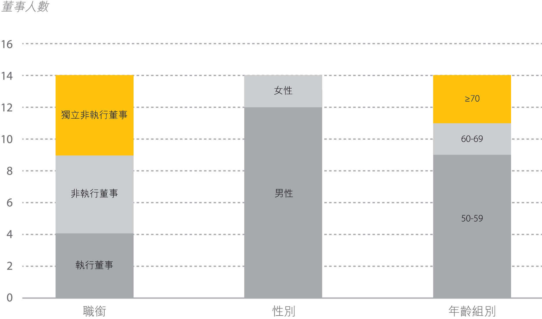 董事會由不同背景且經驗豐富的高級管理人員、會計、銀行及稅務專業人士組成。董事的國籍多元,分別來自中國、美國及日本。該等成員的組成有助於豐富董事會的視角及審議工作。