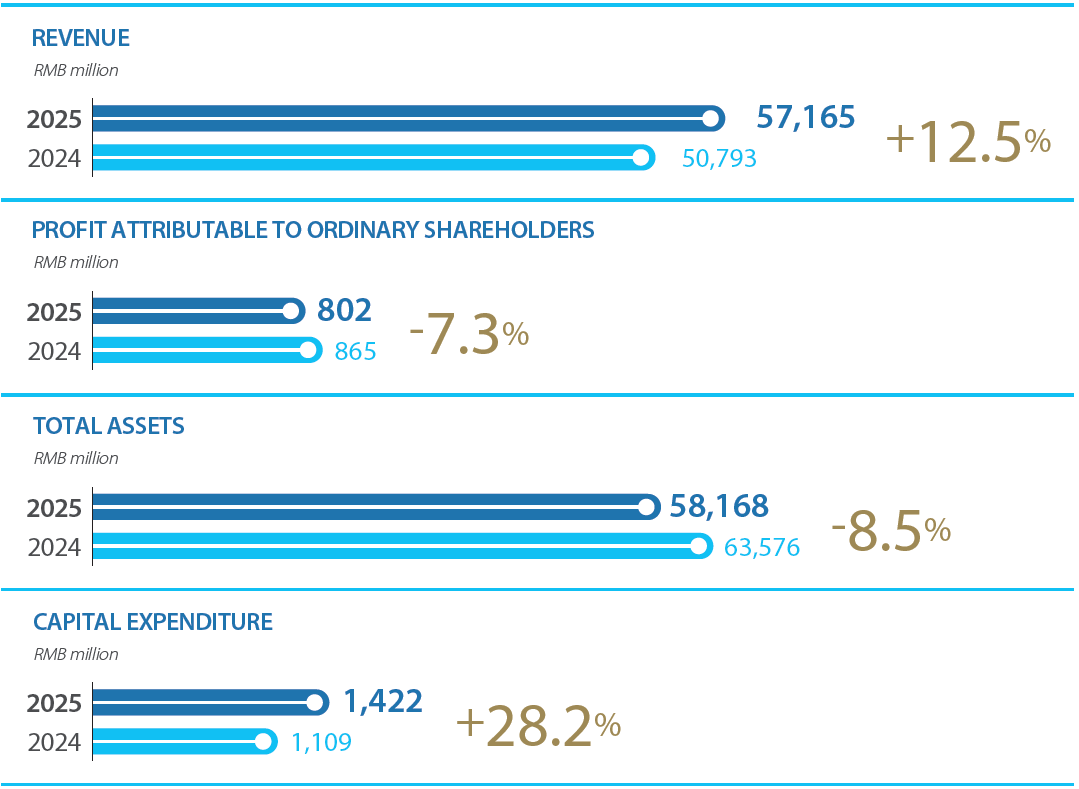 In 2025, the advanced intelligent manufacturing segment achieved revenue of RMB57.165 billion, up 12.5% year on year. Profit attributable to ordinary shareholders reached RMB802 million, down 7.3% year on year. CITIC Heavy Industries maintained its leading market share in mining mills and mine hoists. Driven by core equipment business, it achieved leapfrog growth in its complete equipment business, with annual revenue of RMB8.107 billion and profit attributable to shareholders of the parent company of RMB375 million, up 0.9% and 0.2% year on year, respectively. It maintained R&D spending at around 7% of the total revenue. CITIC Dicastal effectively responded to multiple challenges such as intensified industry competition and fluctuating trade tariffs. By optimising production capacity pipeline and accelerating technological innovation, it achieved wheel sales of 95.17 million units and aluminium castings sales of 173,000 tonnes, up 15.7% and 13.0% year on year, respectively. Its lightweight technology offering was further improved and the integrated die-casting project received bulk orders, laying a solid foundation for product diversification.