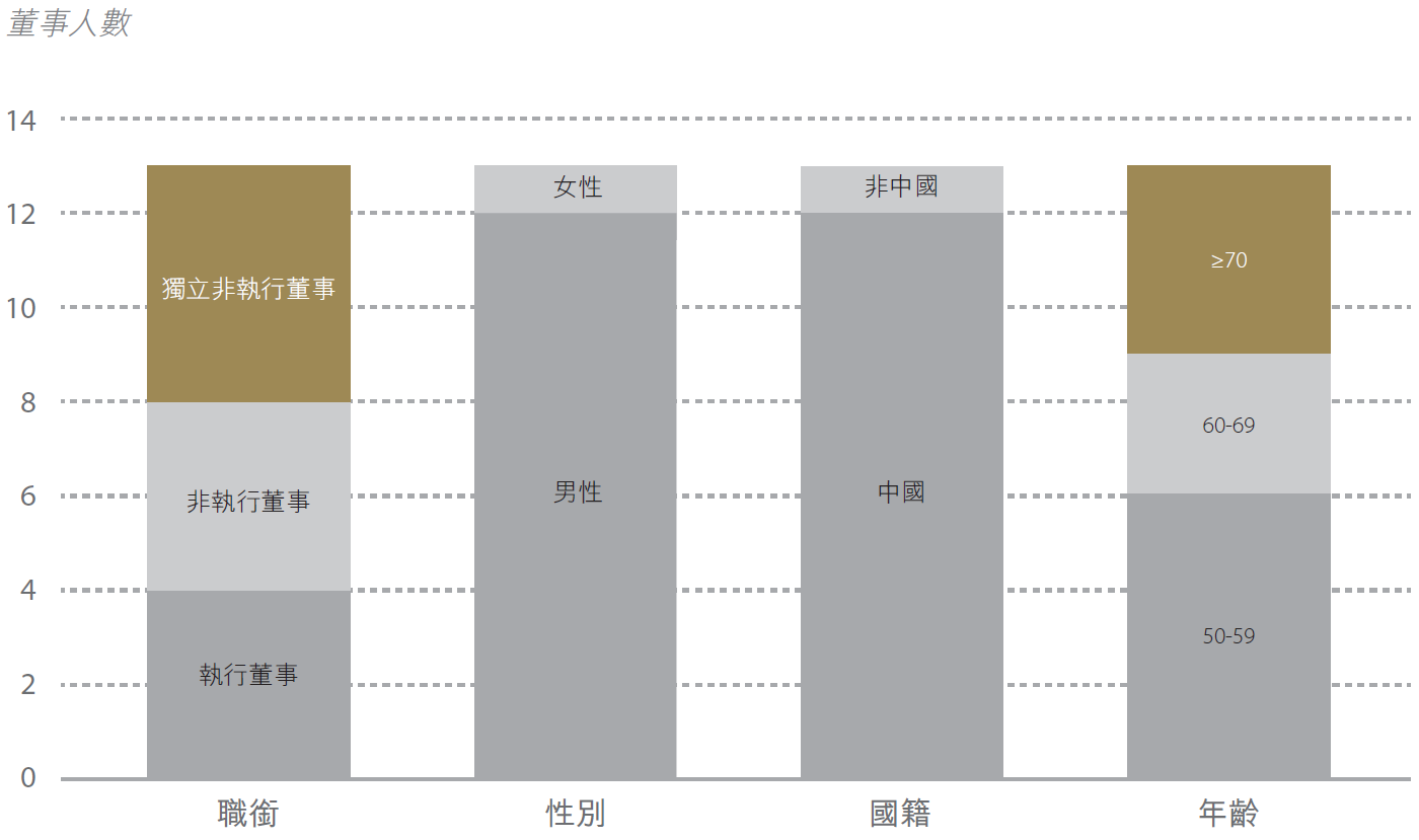 截至本報告日期,董事會中有一名女性董事,佔董事會成員人數7.69%。提名委員會在選擇和提名適當的董事候選人時,會考慮逐步增加女性董事的比例,目標是在維持目前女性董事人數的基礎上適當提升性別多元化。