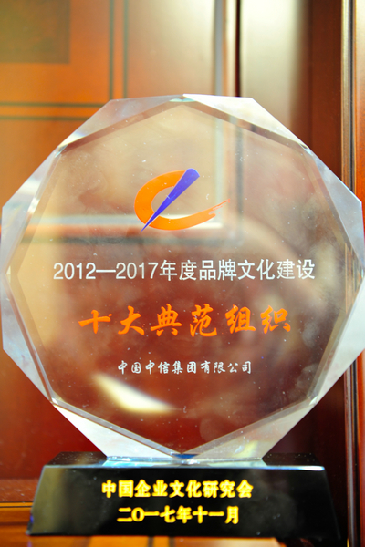 中信集团高度重视品牌文化建设,着眼集团发展战略对品牌文化体系进行调整完善,拓展品牌文化建设的途径方法,通过传承中信优良传统、提倡读书思考、加强品牌文化传播、服务企业经营管理,增强品牌文化自信、深化品牌文化内涵,提升中信品牌在国内外的影响力和综合竞争力,为打造中信百年基业打下坚实基础。中信集团的做法得到专家组的肯定,获“品牌文化建设十大典范组织”的最高荣誉。与中信集团同时获评此奖项的还有中国建筑工程总公司、东风汽车集团、中国交通建设集团、中国中车集团、首钢集团等知名企业。