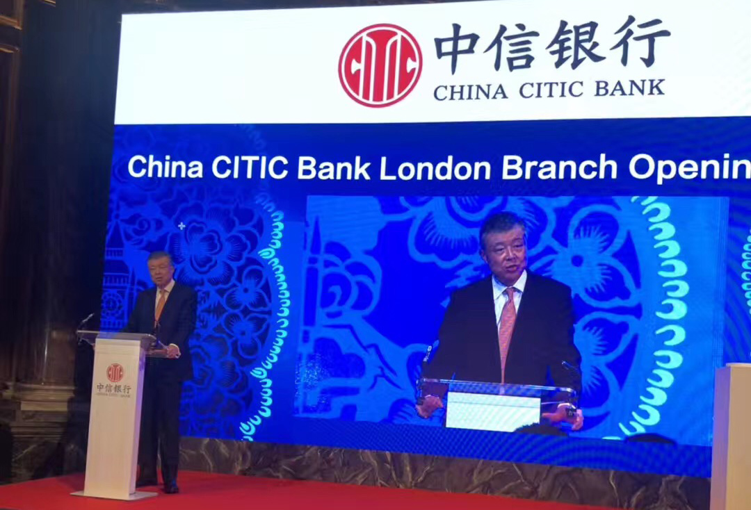 当地时间6月21日,中信银行伦敦分行开业仪式在英国伦敦举行,来自中英两国政府、英国监管当局、金融同业、中英企业及专业机构代表约300人出席。中信银行获批成立伦敦分行已被列入不久前召开的第十次中英经济财金对话政策成果。中信银行董事长李庆萍、中国驻英国大使刘晓明、英中贸易协会继任主席谢拉德•考珀—科尔斯爵士(Sir Sherard Cowper-Coles)及英国48家集团俱乐部主席斯蒂芬·佩里 (Stephen Perry)出席开业仪式,并为中信银行伦敦分行揭牌。