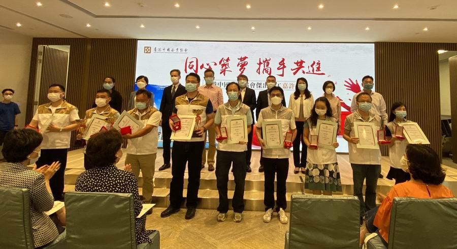 中信股份义工队依托中信港澳员工联谊会平台,成长迅速,目前规模已达50余人。先后组织走入社区关爱独居老人及低收入人士、赠送防疫物资、关注环境保护及维护香港繁荣稳定等一系列活动,充分体现了中信融入、扎根、奉献香港的企业担当,在各项活动中获得了一致好评。在本次嘉许礼上,中信股份义工队获得中企协优秀义工队铜奖称号,中信泰富员工获得中企协优秀义工铜奖、中信资源两位员工获得中企协优秀义工领袖铜奖,还有来自中信泰富、中信金属、中信国际电讯、信银投资及中信建投国际共8名义工获得了中企协优秀义工称号。